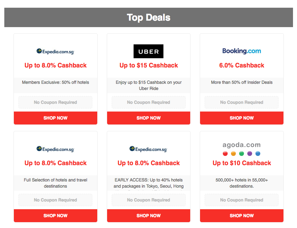 Apart from cashing in your cashback, ShopBack offers discount codes for your travel flights and stays. Insane deals offering up to 60% from Agoda, Expedia, Booking.com and many more. Deals and cashbacks, seems like ShopBack's making travel really affordable. Click Here to view available coupons in ShopBack.